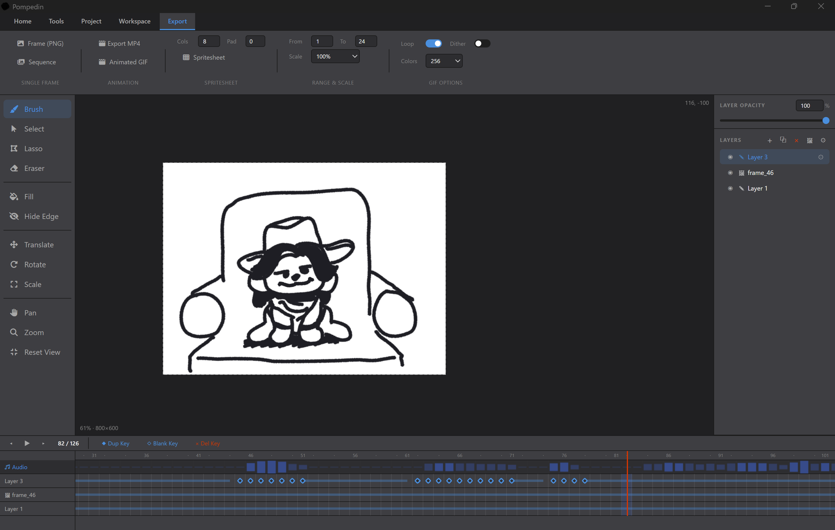Pompedin is named after "Pomme de Pin" / "Pinecone" in French. It is a free vector-based 2D art and animation application designed for flexibility and ease of use.